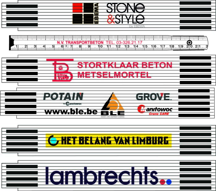 Massstab Diamant is een Duitse fabrikant van vouwmeters. Ze leggen zichzelf een hoge standaard op en dat straalt af op hun producten. Al decennia lang voorzien ze vouwmeters van uw logo’s, foto’s en/of reclameboodschappen?